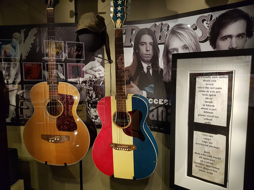 Als laatste gaan we nog naar de Nirvana tentoonstelling waar veel iconische instrumenten van de band te zien zijn evenals originele kledingstukken die door de leden van de band zijn gedragen.