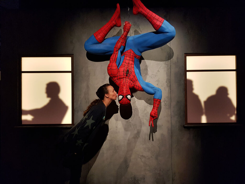 We drinken even wat en gaan de Marvel tentoonstelling en die is ook super mooi gemaakt en zijn er buiten vele kostuums en poppen van de superhelden ook veel originele tekeningen te zien en een interessante film over de geschiedenis van Marvel.