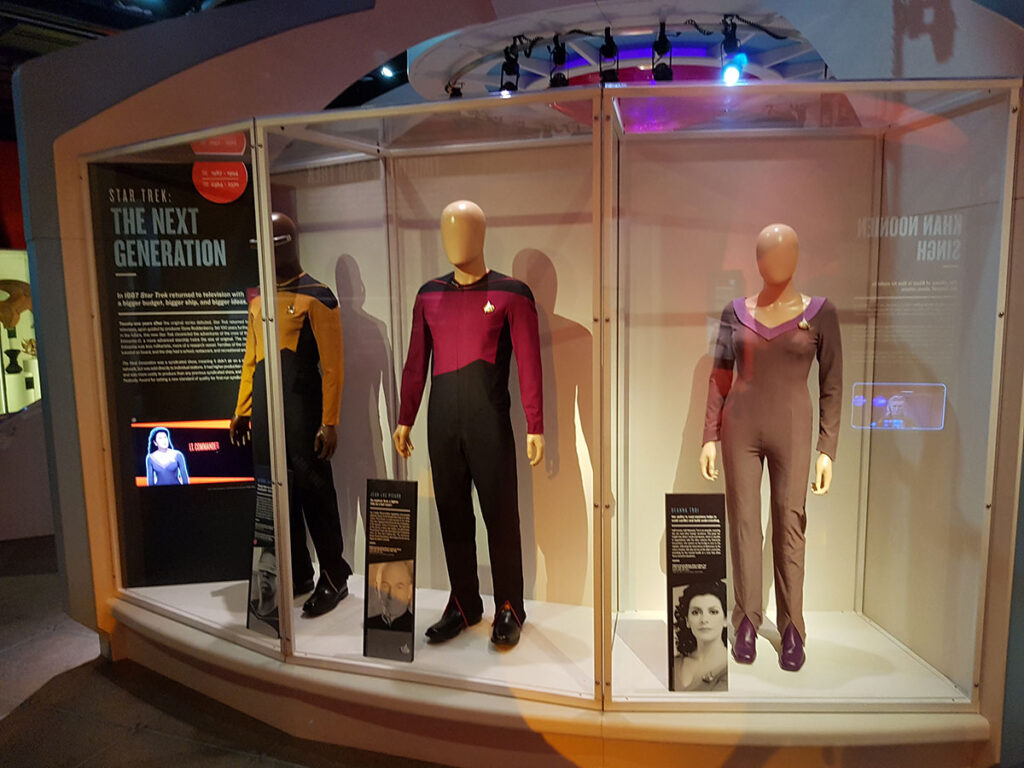 Daarna gaan we naar de Star Trek afdeling waar heel veel echte kostuums en props kan bekijken superleuk als je een fan bent maar zelf voor ons als geen echt grote fans zeer leuk om te zien en ook zeer mooi tentoongesteld.