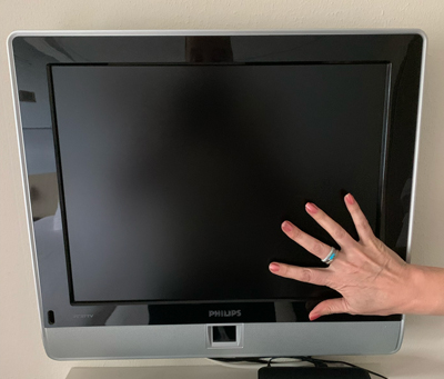 De televisie is natuurlijk bijzaak in deze hotelkamer want buiten ‘bruist’ Otterloo en wie gaat er dan TV zitten kijken op een TV iets groter dan je hand. Daarbij heeft de ’tv’ een beeldverhouding van 4:3 waardoor er bij elk televisieprogramma dat we bekijken dat na 2001 is opgenomen en dus in het formaat 16:9 is gefilmd, boven en onder ook nog een zwarte balk wordt toegevoegd. Hierdoor wordt het beeld nog kleiner. Het doet me allemaal een beetje denken aan die aflevering ‘Dinner Party’ van The Office met die televisie die Michael Scott voor zichzelf heeft gekocht, die hoe hysterisch het allemaal klinkt nog groter is dan de televisie in deze hotelkamer.