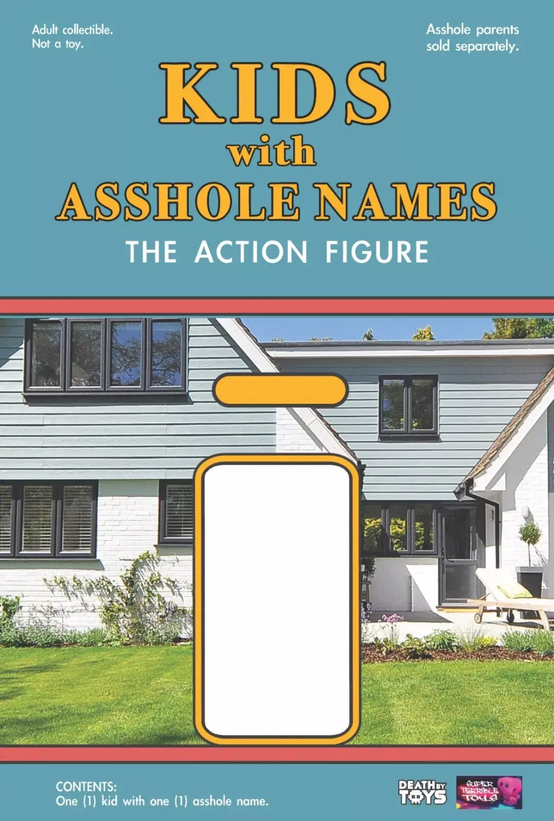 Deze ‘Death By Toys SuperTerribleToys Collab: Kids with A$$hole Names’ is een fantastisch cadeau om op een niet hele subtiele manier iemand te laten weten dat je z’n naam echt heel kut vindt. Ook leuk om te geven aan kersverse ouders met een baby met een verschrikkelijk ordinaire naam.